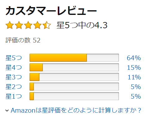 総合評価は、星5つ中の4.3ですので、かなり高い評価だと言えます。